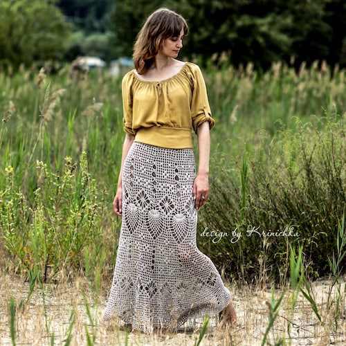 A Line Crochet Skirt Pattern Boho Blues Size S 3xl Bohemian Etsy